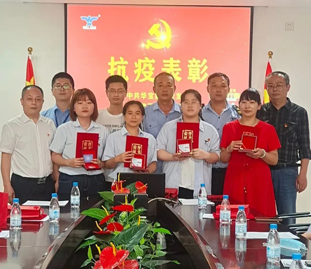 表彰抗疫先鋒 同樣,在三月份出現的新冠疫情里,在公司董事會以及黨群工作部的帶領下,公司上下并肩作戰,齊心守護,廣大黨員干部及志愿者積極響應政府號召,迅速反應,第一時間奔赴“抗疫”前線,以實際行動詮釋了“奉獻、友愛、互助、進步”的志愿精神,取得了抗擊本輪疫情的階段性勝利。今天,特隆重舉行抗擊新冠肺炎疫情表彰會,向作出貢獻的黨員和職工授予“抗疫先鋒”榮譽稱號,弘揚偉大抗疫志愿精神,致以崇高敬意,表達衷心感謝。 面對此次疫情,華寶集團的黨員表現出了高度的責任感和使命感,挺身而出,成為群眾的“主心骨”和先鋒軍,用實際行動當好標桿,發揮先鋒作用。他們不忘黨員的初心本色,在黨旗引領下,團結群眾,眾志成城,勇敢地投入到疫情防控前線,堅決捍衛人民群眾的生命財產安全,用實際行動彰顯黨員的責任和擔當。此次受到表彰的一共有12名黨員干部(含2名涉外黨員),分別為師體偉、余紅慶、李樹海、虞先禮、王碧花、文俊榮、周春燕、蔡文明、陳國華、吳秋媛、張太毛、王桂榕,華寶集團黨支部書記、工會主席師體偉向他們頒發了“抗疫先鋒”榮譽證書和特別定制的紀念章。