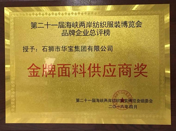 金牌面料供應(yīng)商獎