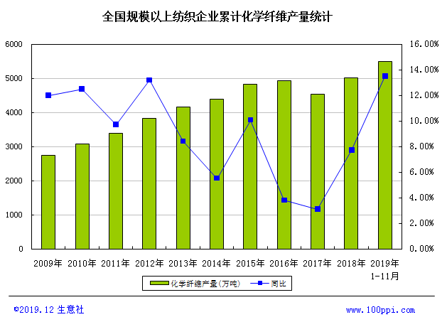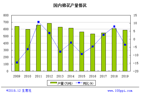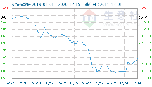 據生意社價格監測,截止2019年12月25日紡織板塊的商品價格較2019年1月1日相比均成下跌態勢,其中跌幅超過20%的商品共有5個,跌幅前3的商品分別為粘膠短纖(-26.22%)、錦綸POY(-22.39%)、滌綸短纖(-21.27%)。 588.9萬噸